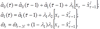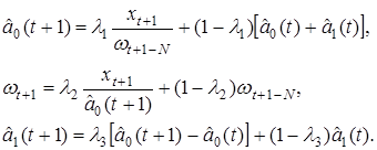 где ωτ − коэффициент сезонности, а N − число временных тактов, содержащихся в полном сезонном цикле. Сезонность в этой формуле представлена мультипликативно. Метод использует три параметра сглаживания