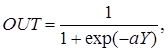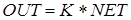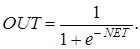Рисунок 4.3 - Искусственный нейрон с активационной функцией На рисунке 4.3 блок, обозначенный F, принимает сигнал NET и выдает сигнал OUT. Если блок F сужает диапазон изменения величины NET так, что при любых значениях NET значения OUT принадлежат некоторому конечному интервалу, то F называется (сжимающей) функцией. В качестве (сжимающей) функции часто используется логистическая или сигмоидальная (S-образная) функция. Эта функция математически выражается как