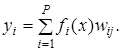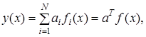 где ai (t) = (a1 , a2 ,..., aN )T – вектор подлежащих определению параметров; f(x) = (f1 (x), f2 (x),..., fN (x))T – вектор базисных функций. В РБС в качестве базисных выбираются некоторые функции расстояния между векторами