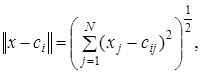 , пытаются перекрыть все пространство образов, не оставляя пустот. Используя метод k-ближайших соседей, определяют k соседей центра ci