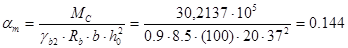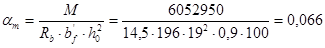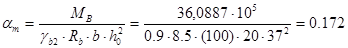 Определение высоты сечения второстепенной балки. Высота сечения балки определяется по опорному моменту при значении коэффициента