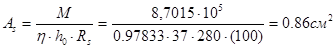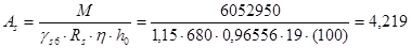 Плитная часть армируется сеткой со стержнями арматуры класса А-III с Требуемая площадь арматуры: