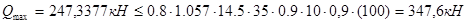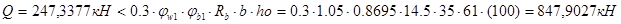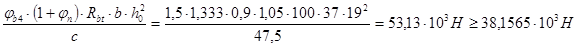 и поскольку 0,16×jb4×(1+jn)×Rbt×b=0,16×1,5×(1+0,333)×0,9×1,05×37×100=1118.6Н/см >118.446 Н/см, принимают с=2,5×h0=2,5×19= 47,5 см. Другое условие: при Q = Qmax – q1×c = 43.7827×103 – 118.446×47,5 = 38.1565×103 H,