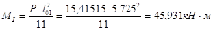 5.3 Опорные моменты ригеля по граням колон Для схемы 1+2:
