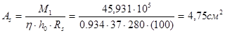 г) момент, который может воспринять сечение, армированное 4ф16 арматуры класса А-IIIcAs=8,04 см2 (второй пролет, нижняя арматура): аs=5см,