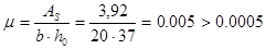Принимаем 20ф5Вр-1 cAs= 3,92 см2. Коэффициент армирования: