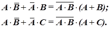 Применяя теорему склеивания, получим булево выражение