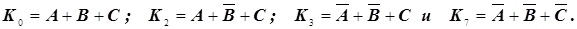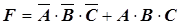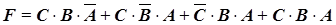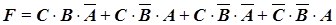 (коституента единицы – это единичное значение ПФ на одном конкретном наборе. Всего для ПФ трех переменных может быть восемь конституент единицы, если функция принимает единичное значение на всех наборах). Конституента единицы записывается в виде конъюнкции. Для нашего примера Булево выражение ПФ в СДНФ представляет сумму конституент единицы: