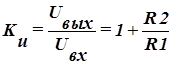 Задаваясь значением резистора R1 и из формулы (10.38), получим выражение для расчёта R2 по известному значению коэффициента усиления Ku :