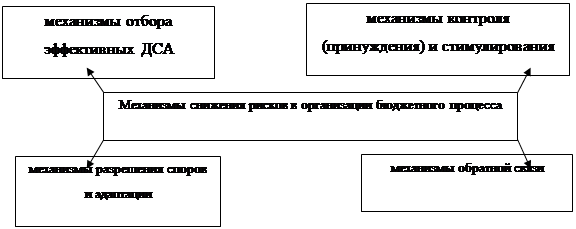 Рисунок 7 — Механизмы снижения рисков в организации бюджетного процесса Строго говоря, поддержание БОР может осуществляться в двух формах: с использованием механизмов, характерных для СБ (БОР), или совокупности специализированных механизмов (БОР2), позволяющих нивелировать риски сбоев в функционировании БОР. Попытка совершенствования соответствующих областей вне системного подхода обречена на провал с вероятным снижением качества функционирования государства. [11] Траектория реформирования бюджетных отношений как на федеральном, так и на внутриведомственном уровнях зависит от совокупности (по отношению к индивиду/группе индивидов) факторов. Для лиц, принимающих стратегические решения на самом высоком уровне, такими факторами являются политическая конкуренция и состояние государственных финансов. На межведомственном и внутриведомственном уровнях значимыми факторами служат: частота трансакций; специфичность активов; неопределенность. Далее с использованием инструментария экономической теории трансакциониых издержек, элементы которого были разработаны О. Уильямсоном, будут рассмотрены вопросы обеспечения эффективности и устойчивости результатов реформирования бюджетного процесса. [11] Во-первых это частота трансакций. Частота трансакций исследуется с учетом условий окупаемости специализированных механизмов, обеспечивающих работоспособность системы бюджетирования. При случайных или единичных трансакциях подобные механизмы не окупаются с точки зрения соотношения выгод (выражающихся, например, в снижении трансакционных издержек) и издержек их функционирования. В зависимости от уровня иерархии частота трансакций по-разному воздействует на выбор поддерживающих механизмов. Применительно к процессу подготовки и согласования бюджета ее целесообразно рассматривать в контексте воспроизводимости во времени соответствующей модели бюджетных отношений. Более того, на уровне системы бюджетных отношений в целом возможна значительная экономия на масштабе при осуществлении инвестиций в создание и поддержание специализированных механизмов. В случае непосредственного предоставления государственных услуг значение имеют воспроизводимость во времени и объем их предоставления. [11] Особый интерес с точки зрения издержек реализации внутриведомственных и межведомственных соглашений представляет влияние частоты трансакций, реализуемых между государственными служащими. Чем она выше, тем выше степень персонифицированности обмена, ниже издержки контроля и адаптации "локальных" соглашений. Вместе с тем высокая степень персонифицированности способна породить такую форму оппортунистического поведения, как оказание влияния на доверителя (принципала), включая сопутствующие "издержки влияния". Таким образом, эффективность той или иной формы управления трансакциями будет зависеть и от того, насколько удается избежать проявления оппортунизма. [11] Во вторых это специфичность активов. В рамках реформы бюджетных отношений под инвестициями в специфические активы мы понимаем затраты на внедрение новых, характерных для БОР технологий бюджетного процесса, а также институтов, которые посредством формирования стимулов для его участников воздействуют на эффективность использования соответствующих технологий. В пер
