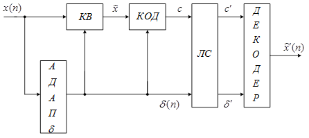 Рисунок 9 Системы адаптации по шагу в этой схеме цифровые. Схема адаптации по выходу с переменным коэффициентом усиления имеет вид (рисунок 10).