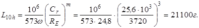 де С – динамічна вантажність підшипника. 9. Визначають ресурс попередньо обраного підшипника