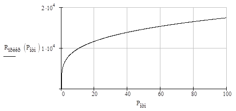 График зависимости дальности действия РЛС, от отношения мощностей РРЛС/РПАП, при расстоянии РЛС-ПАП 400 км