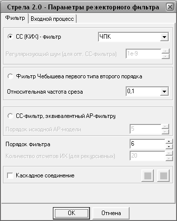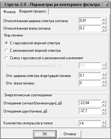 Тип фильтра СС(КИХ)-фильтр ЧПК. Порядок фильтра задаем так, что бы число импульсов в пачке было не меньше, чем порядок фильтра +1. На второй закладке «Входной процесс» выбираем: