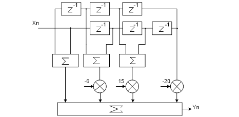 Структурная схема цифрового режекторного фильтра, приведена ниже: