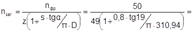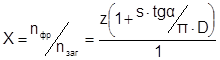 Где nфр – обороты фрезы (об/мин), nзаг – обороты заготовки (об/мин), z – число зубьев у нарезаемого колеса, s – продольная подача заготовки (мм/обзаг ) α – угол наклона зуба (град), D – делительный диаметр заготовки (мм). При раскрытии скобок в числителе полученное выражение показывает, что за Z число оборотов однозаходной фрезы заготовка повернётся на 1 оборот; выражение Тогда скорость вращения заготовки рассчитывается по формуле: