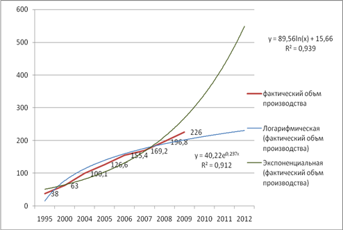 Рисунок 1.1 - Логорифмический и экспонентный прогноз с использованием линии тренда