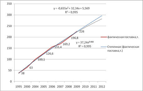 Рисунок 1.2 - Полиноминальный и степенной прогноз с использованием линии тренда