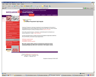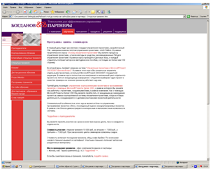 Дизайн сайта (рис № 1.1-1.3.) средненький, но очень удобный, захватывает своим подробным и лёгким обучением таких необходимых и распространнёх программ в наше время, CorelDraw, word. Сайт занимается он-лайн обучением таких услуг как: html, excel, word, свой сайт, графика и т.д. Предлагают уроки по обучению данных программ, показывают примеры и так же разрешают скачивание программ? Также предлагаются возможности в правом верхнем углу, возможность купить книгу по данной программе. Сайт он-лайн обучения Рис 1.1. www.bogdanov-associates.com