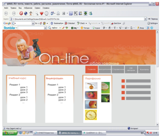 Идеей этого варианта сайта является демонстрирование функциональности навигации сайта и технологии он-лайн обучения. Рис 8