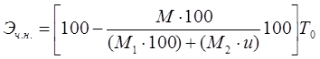 де Тр1 і Тр2 — трудомісткість виготовлення одиниці продукції відповідно до й після впровадження заходу (у нормо-годинниках або по чисельності працівників); Вп — кількість одиниць продукції або обсяг виробництва на плановий період; Тм — частина планового періоду, протягом якого діє дане вдосконалення. В випадках, коли трудомісткість виготовлення продукції вказується в нормо-годинниках, можлива економія чисельності працюючих визначається шляхом розподілу суми нормо-годинника на баланс робочого часу одного робітника з урахуванням виправлення на перевиконання норм виробітку. Розрахунок можливої економії чисельності працюючих (в %) від впровадження нового або модернізації діючого встаткування в цеху або на участь (Эч. н) може бути зроблений по формулі: