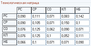 На основании этого вектора и производственных возможностей был получен предварительный режим работы предприятия. Plan1 = 52966,57 Производство рабочих станций 52996 шт Plan2 = 2123,57 Производство серверов 2123 шт Plan3 = 7413,2 Производство сетевого оборудования 7413 шт Plan4 = 11658,14 Производство компьютерной периферии 11658 ш Plan5 = 25838,51 Производство ноутбуков 25840 шт Было определено, что производство является продуктивным, т.к. отношение согласованности и индекс согласованности меньше 1. Продуктивность технологической матрицы была подтверждена несколькими способами. С использование модели Леонтьева определены значения внутреннего потребления и получен столбец конечного и валового продукта. Таблица внутреннего потребления