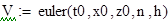 2.3 Численное решение методом ЭйлераПерепишем условие следующим образом: x'=z z'+ 5z=29cos t z'=29cos t – 5z Задаём начальные данные:
