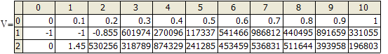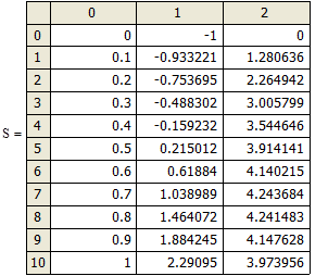 | Заданный интервал | Точное решение | Приближенное с помощью рядов | Метод Эйлера (шаг 0,1) | Метод Эйлера (шаг 0,01) | Метод Рунге Кутты |