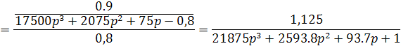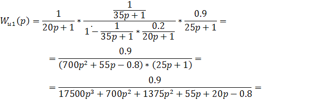в нашому випадку це Час регулювання визначається наочно по графіку, в нашому випадку Тр =1075с; 4.5 Розрахунок системи на стійкість Розроблена САР передусім перевіряється на стійкість. Якщо система, в якій збурюючий вплив знятий або постійний по величині, а зміна управляючого впливу на постійну величину зберігається, після закінчення перехідного процесу знову приходить в першопочатковий або інший стан рівноваги, то така система називається стійкою. Якщо при цих умовах в системі виникають коливання із зростаючою амплітудою або здійснюється монотонне збільшення регулюємої величини від її заданого стану рівноваги, то система називається нестійкою. Для розрахунку стійкості системи користуються відповідними критеріями. Найбільш поширеними є алгебраїчні та частотні критерії. Для розрахунку стійкості даної системи використаємо алгебраїчний критерій Гурвіца. Цей критерій дозволяє за коефіцієнтами характеристичного рівняння замкнутої системи визначити її стан. Розрахунки Знаходимо функцію розімкнутої системи
