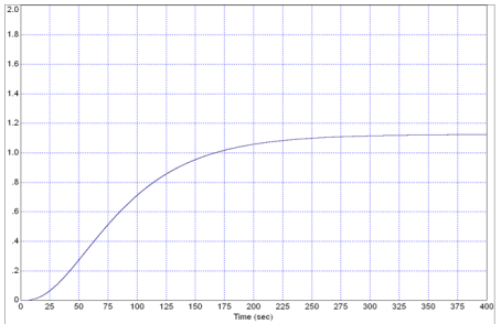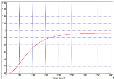 Рисунок4.5 Графік ПІ-регулятора за збуренням ПІ-регулятор складається з пропорційної та інтегральної частини і на основі його структурної схеми можна отримати загальну передаточну функцію регулятора. Для цього необхідно переведення передаточних ланок системи.