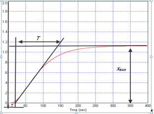 Рисунок3.7 Дослідження кривої розгону. Отже, за каналами управління Статичні характеристики об'єкта визначаються за відповідними передаточними функціями або за диференціальним рівнянням об'єкта з урахуванням початкових умов. Оскільки в статичному стані об'єкта всі похідні вхідних впливів та вихідних величин дорівнюють нулю, зображення вихідних похідних у передаточних функціях (р3 , р2 , р , і т.д.) також прирівнюються до нуля.
