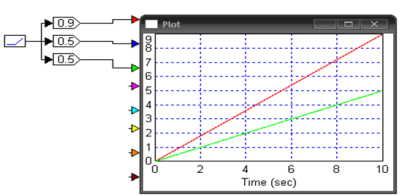 Рисунок 3.4 Графік перехідної характеристики об’єкта за каналом управління Щоб отримати криву розгону за каналами збурення потрібно переробити схему подачі ступеневого сигналу, тобто потрібно подати його на