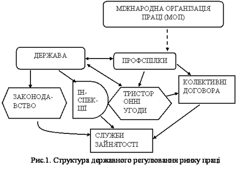 Державні органи керування трудовими ресурсами включають сукупність органів державної законодавчої, судової, виконавчої влади, централізовано регулюючі основні соціально-економічні відносини в країні, а також методи керування й механізм їхнього використання. Їхніми завданнями є прийняття законів, контроль за їхнім виконанням, виробіток і реалізація державної політики в області соціально-трудових відносин, що охоплюють питання оплати й мотивації праці, регулювання зайнятості й міграції населення, трудового законодавства, рівня життя й умов праці, а також розгляду трудових суперечок. Центральним органом виконавчої влади, що здійснює керівництво роботою з формування, використанню й розвитку трудових ресурсів, забезпеченню єдиної державної політики в області праці, зайнятості й соціального захисту населення й одночасно координуючу роботу із цих напрямків на Україні, є Міністерство праці і соціальної політики України (МПіСПУ). Основними завданнями МПіСПУ є розробка пропозицій і реалізація основних напрямків і пріоритетів державної соціальної політики за рішенням комплексних проблем соціального розвитку, народонаселення, удосконаленню системи оплати праці й соціального партнерства, підвищенню рівня життя й доходів населення, розвитку соціального страхування, кадрового потенціалу, організації пенсійного забезпечення й соціального обслуговування, поліпшенню умов і охорони праці, удосконалення законодавства про працю, зайнятість і соціальний захист населення, забезпечення ефективної зайнятості населення й соціальних гарантій, соціального захисту родини, жінок, дітей, громадян літнього віку й ветеранів, інвалідів, громадян, звільнених з військової служби, і членів їхніх родин, здійсненню міжнародного співробітництва у встановленій сфері діяльності й наданню міжнародної гуманітарної допомоги становленню й розвитку державної служби зайнятості та ін. Державний центр зайнятості забезпечує зайнятість населення й попередження масового і скорочення тривалого безробіття та створення умов, необхідних для розвитку трудових ресурсів. Соціальні гарантії у сфері зайнятості передбачені Конституцією України, Законом України "Про зайнятість населення", Законом України "Про загальнообов'язкове державне соціальне страхування на випадок безробіття", іншими нормативно-правовими актами. Законом України "Про зайнятість населення" (стаття 11) гарантується право громадян на соціальний захист у сфері зайнятості та право на одержання допомоги по безробіттю особам, визнаним у встановленому порядку безробітними. Відповідно до статті 7 цього закону за рішенням місцевих державних адміністрацій, виконавчих органів відповідних рад може встановлюватись транспортна доступність та інші критерії підходящої роботи, які посилюють соціальний захист населення. Крім того, відповідно до статті 5 закону держава забезпечує надання додаткових гарантій щодо працевлаштування працездатним громадянам у працездатному віці, які потребують соціального захисту і не здатні на рівних конкурувати на ринку праці, у тому числі: а) жінкам, які мають дітей віком до шести років; б) одиноким матерям, які мають дітей віком до чотирнадцяти років або дітей-інвалідів; в) молоді, яка закінчила або припинила навчання у середніх загальноосвітніх школах, про