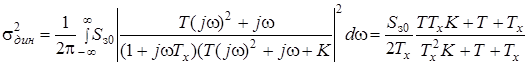 Вводя относительные величины α = 1/Txи β = T/Tx и учитывая выражение для дисперсии задающего воздействия, получаем: