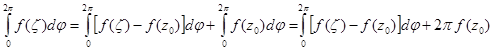 Эта формула носит название формулы среднего значения и выражает значение аналитической функции в центре окружности как среднее из ее граничных значений.