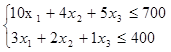 Визначити оптимальні обсяги виробництва електроплит різних моделей, що максимізують дохід фірми. Розв’язок Складаємо математичну модель задачі. Позначимо через х1 кількість електроплит 1-ї моделі, що виготовляє фірма за деяким планом, а через х2 кількість електроплит 2-ї моделі та через та через х3 кількість виробів 3-ї моделі Тоді прибуток, отриманий фірмою від реалізації цих електроплит, складає ∫ = 100х1 + 60х2+ 50х3. Витрати сировини на виготовлення такої кількості виробів складають відповідно: А =10х1 + 4х2 + 5х3, В =3х1 + 2х2 + 1х3, Оскільки запаси сировини обмежені, то повинні виконуватись нерівності: 10х1 + 4х2 + 5х3 ≤ 700 3х1 + 2х2 + 1х3 ≤ 400 Оскільки, кількість виробів є величина невід'ємна, то додатково повинні виконуватись ще нерівності: х1> 0, х2> 0, х3> 0. Таким чином, приходимо до математичної моделі (задачі лінійного програмування): Знайти х1 , х2, х3 такі, що функція ∫ = 100х1 + 60х2 + 50х3 досягає максимуму при системі обмежень: