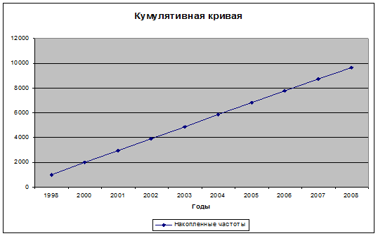 Т.е. с надежностью 95% можно утверждать, что средняя численность населения Республики Саха (Якутия) находится в интервале Выборочные средние и относительные величины распространяются на генеральные совокупности с учётом предела их возможной ошибки. 2.5 Анализ динамического рядаПроведем расчет показателей динамики рассматриваемого ряда, для этого составим расчетную таблицу. В качестве базисного года примем 1998. Определим значения ежегодных цепных и базисных абсолютных приростов.