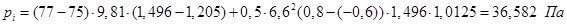 Ru - нормативное сопротивление воздухопроницанию, принимаем Ru = 0,13 м2 ×ч×Па/кг; D pок - расчетная разность между давлениями на наружной и внутренней поверхностях ограждающих конструкций, определим как: