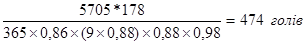 М = О – потужність свинарського підприємства, гол; П – репродуктивний період, днів; Т – коефіцієнт заплідненості ♀; Д – вихід ділових поросят; Кд – коефіцієнт збереженості підсвинків за період дорощування; Кв – коефіцієнт збереженості молодняку за період відгодівлі. Показником ефективного використання маточного поголів’я є кількість опоросів на ♀ за рік (в середньому по стаду):