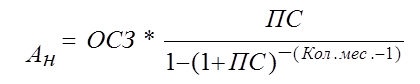 ПМ – официально установленная величина прожиточного минимума в расчете на душу населения в Санкт-Петербурге (сообщается Банку Агентством). В случае, если полученное в результате расчета значение коэффициента П/Д не соответствует указанным выше требованиям, максимально- допустимую сумму кредита следует уменьшить. В случае, если испрашиваемый Заемщиком размер Кредита превышает максимально допустимую сумму Кредита, рассчитанную Банком, Кредитный работник информирует об этом Заемщика и предлагает ему: - изыскать возможность для увеличения величины обязательного первоначального взноса за Квартиру; или - при поиске Квартиры ориентироваться на сумму имеющихся у него собственных денежных средств и максимально допустимую сумму Кредита, которую ему может предоставить Банк. Осуществляет расчет первоначального размера ежемесячного аннуитетного платежа На данном этапе расчет аннуитетного платежа производится исходя из расчетной величины максимальной суммы Кредита, которую Банк может предоставить заемщику. В случае, если заявленная Заемщиком в Заявлении на предоставление ипотечного кредита сумма Кредита меньше сложившейся расчетной величины максимально возможной суммы Кредита, и Кредит требуется Заемщику в сумме, не более указанной в его заявлении, расчет аннуитетного платежа производится исходя из суммы Кредита, указанной в заявлении Заемщика на предоставление ипотечного кредита. Аннуитетный ежемесячный платеж Заемщика по кредиту рассчитывается по следующей формуле:
