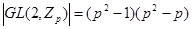 Рассматривая как группу автоморфизмов двумерного векторного пространства V над , легко найти порядок . Действительно, действует на множестве пар базисных векторов. Образом может быть любой отличный от нуля вектор (их всего штук), а при всяком выборе образом может быть любой вектор из (таких векторов имеется штук). Стало быть, , что в сочетании с (1) приводит к формуле