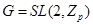 Пусть - группа с определителем 1 над полем из р элементов. Из разложения