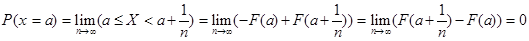где m = 0, 1, 2, … Числовые характеристики распределения Пуассона: 3. М(Х) = λ 4. D(X) = λ 2. Основные распределения непрерывных случайных величин Отметим ряд особенностей свойств непрерывных случайных величин. 1. Множество значений непрерывной случайной величины есть совокупность всех точек числовой оси. 2. Функция распределения непрерывной случайной величины. 3. Найдем вероятность того, что в результате испытаний случайная величина X примет значение a, где a - произвольное действительное число: