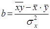 Так как знаменатель этого выражения есть не что иное, как дисперсия признака х, т. е. σ2, то можно записать формулу коэффициента регрессии в виде: