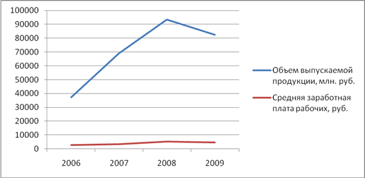 Проанализировав таблицу 1, видно, что в 2009 году все основные показатели значительно уменьшились. Можно предположить, что такое падение связанно с неустойчивой экономикой на рынке машиностроения и в стране в целом в конце 2008 года. В результате чего у предприятия понизился объем выпускаемой продукции на 11,9%, и произошло сокращение штатов на 7,3%
