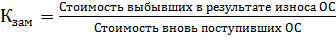 В нашем примере Кобн будет составлять: Кобн. = (60680 / 231260) *100% = 26,24%; Коэффициент обновления показывает, сколько копеек предприятие инвестирует в обновление основных средств, приходящихся на каждый рубль имеющихся основных фондов, т.е. предприятие инвестирует 26 копеек, которые приходятся на каждый рубль имеющихся основных фондов. 2) коэффициент выбытия основных средств КВЫБ: