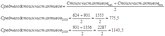 При расчете отношения чистых активов к совокупным была выявлена реальность динамики чистых активов. Несмотря на то, что стоимость совокупных активов увеличивалась, отношение чистых активов к ним также увеличивалось, и за весь рассматриваемый период этот коэффициент вырос на 0,133. Это показывает положительную динамику чистых активов. Рассчитав отношение чистых активов к уставному капиталу, мы видим, что стоимость чистых активов гораздо больше стоимости уставного капитала и со временем это отношение увеличивается, за весь анализируемый период это отношение увеличилось более чем в 2 раза (с 62,4 до 135,6, абсолютное отклонение составило 73,2). На следующем этапе проводим оценку эффективности использования чистых активов. Для этого рассчитаем среднегодовую стоимость чистых активов.