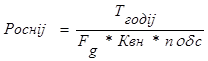 Роснij – количество основных рабочих по i-ой профессии и j-ому разряду, чел. Fg – действительный фонд времени одного работника, часы nобс – норма обслуживания Тгодij – годовая трудоемкость работ по i-ой профессии и j-ому разряду, норма/часы Годовая трудоемкость работ по каждой профессии и разряду в единичном и мелкосерийном производстве рассчитывается по формуле: