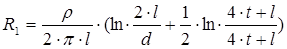 де l - довжина вертикального стержня дорівнює 1 м; t - відстань від поверхні землі до середини електрода.