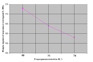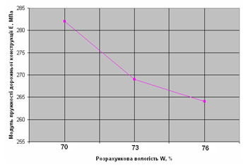 Рисунок 5.1 - Графік зміни модуля пружності дорожнього одягу залежно від вологості ґрунту робочого шару (суглинок легкий)